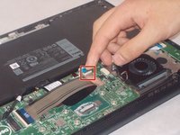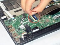 Use your fingers to remove the connecting cable to the battery unit. Firmly grab the cord closest to the motherboard connection and pull straight back.