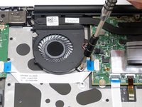 Using the #1 Philips screwdriver, remove the two, 2mm screws securing the fan assembly.