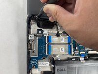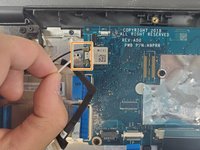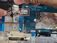 Disconnect the display cable from the motherboard by using a plastic opening pick.