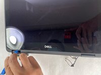 Use the opening tool to open the display panel starting from the pry points located above the left and right hinges.