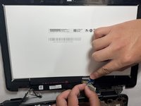 Peel back the adhesive tape securing the display cable on the back of the display panel and separate the display.