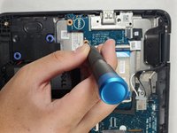 If your laptop is plugged into an outlet with a working adapter, but the device will neither charge nor power on, this is a sign that the charging port is damaged and needs to be replaced. For this configuration, the charging port is on the left when the bottom cover is facing up. Another way to identify the charging port is to look for a Type C port with a lightning bolt symbol on top.