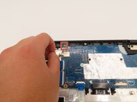 Disconnect the battery from the motherboard by gently pulling on the connector cable at the top of the battery.