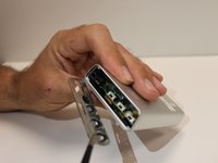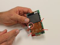 Disconnect side clips of screen to detach the base of it from the main circuit board, using the metal spudger.