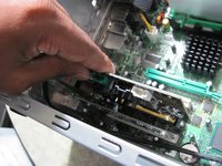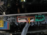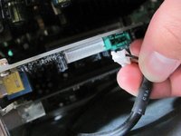 Locate and remove the white connector on the sound card by pulling on the black cable.