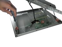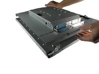 With the monitor facing down, gently lift the back case away from the rest of the monitor to expose the inverter board and mother board.