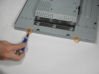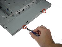 With the monitor facing down, remove the two 5.81 mm Phillips #2 screws on the right side of the metal casing.