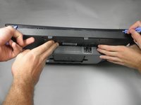Insert a plastic opening tool or spudger into the holes and gently pry the plastic apart along the groove.