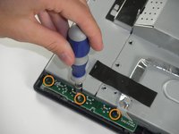 Remove the three 9.71 mm Phillips #2 screws holding the interface button board to the display bezel.