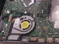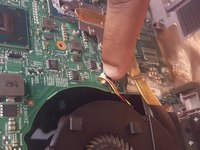 Flip motherboard up, unscrew the three screws, and unclip the fan.