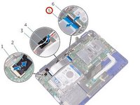 Remove the screws that secure the display assembly to the palm-rest and keyboard assembly.