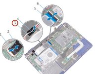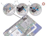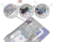 Slide the display cable into its slot on the system board and press down the latch to secure the cable.