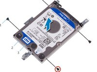Align the screw holes on the NEW hard drive with the screw holes on the hard-drive bracket.