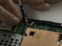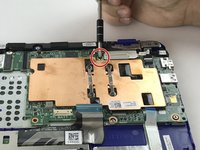 Remove the 2mm screw that secures the motherboard and keyboard assembly.