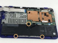 Remove the screws that secure the battery to the palm rest and keyboard assembly by using the PH1 screw driver to unscrew the three size 40 mm battery screws.