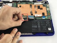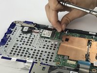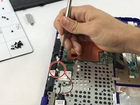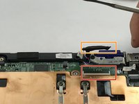 With tweezers, detach the white and black antenna cables connected to the Wireless WLAN Card.