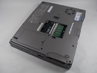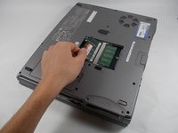 Remove the one Phillips #0 screw at the bottom-center of the panel covering the RAM and remove the panel.
