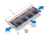 Use your fingertips to carefully spread apart the securing clips on each end of the memory module connector until the memory module pops up.