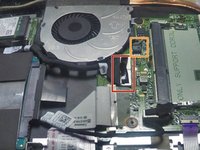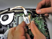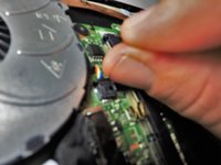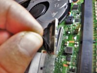 Lift the fan from the system board by using your thumb and index or middle finger to gently pull away from the rest of the device.