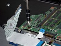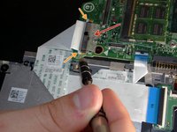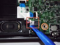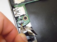 Loosen the LCD cable and peel it off of the base (highlighted with arrow).