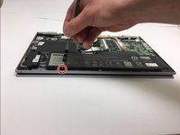 Unscrew and remove the 2 of the 3mm Phillips head screws holding the hard drive in place.