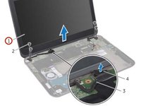 Pull the pull-tab to disconnect the display cable from the system-board connector.