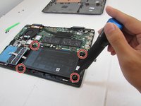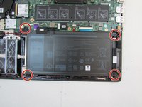 Remove the four Phillips #0 screws securing the battery to the keyboard assembly.