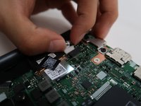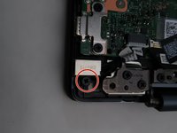 Remove the two screws securing the power adapter port to the keyboard assembly using the Phillips #0 screwdriver.
