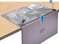 Remove the four screws (M2.5x5) that secure the display hinges to the palm rest and keyboard assembly.