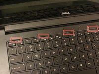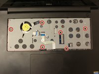 Unscrew the six black (5.70 mm) screws from under the keyboard.