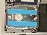 Locate and unscrew the black (5.70mm) screws on the top left and bottom right of the Hard drive.