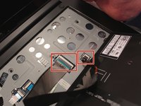 Peel back the yellow translucent tape at the bottom of the motherboard which secured the hard drive connector.
