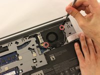 Locate and unscrew the top two black (5.70mm) screws, which secure the motherboard to the base of the laptop.
