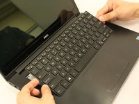 Using a plastic opening tool, carefully pry each slit to loosen the keyboard.