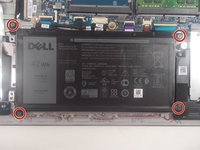 • Remove the four 3.5 mm screws holding the battery down with a JIS #0 screwdriver.