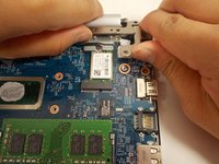 Use tweezers to peel off the sticky label that is placed over the display cable port.