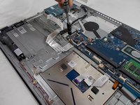 Remove the three 6 mm screws holding down the screen hinge in the upper right corner using a JIS #0 screwdriver.