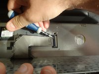 Using a flat head screwdriver, depress locking tabs holding keyboard into place