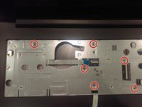 Use a Phillips J0 screwdriver in order to remove the screws indicated by the markers in the picture. It will be a total of 5 screws. Careful not to puncture the battery.