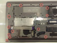 Using the Phillips J0 screwdriver, remove all the screws from the case. There is a total of 16 screws. CAUTION: The bottom left screw does not remove from the laptop.