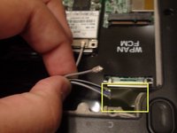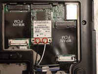Disconnect the black and white wires attached to the WLAN card by pulling up on the connectors with your fingers.