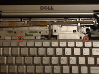 Remove the two 10 mm Phillips #1 screws from the back of the laptop that also attach the lid assembly to the laptop with a Phillips #1 screwdriver.