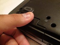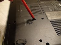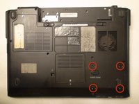Locate the four 4 mm Phillips #1 screws that secure the hard drive to the laptop. Each of the screws has a white cylinder next to it.