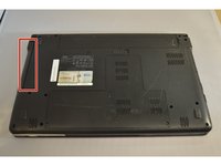 Place the laptop on a flat surface with the bottom side facing upwards.