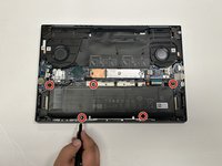Use a Phillips #00 to remove the five screws securing the battery to the laptop.