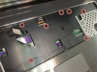 Remove the seven M2.5x5 screws securing the palmrest to the base.