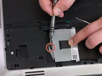 Remove the 2.5 mm Phillips #0 screw securing the hard drive.