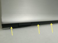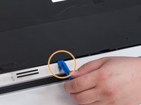 Using a plastic scribe, gently lift and release the tabs on the palm rest around the computer base including the backside.