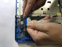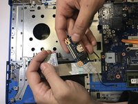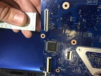 Peel off the tape that secures the power-adapter port to the palm-rest assembly.