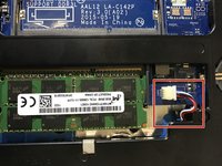 Use a plastic opening tool to gently pry the CMOS battery found at the bottom right of the laptop out of the socket.